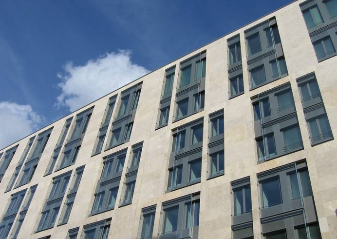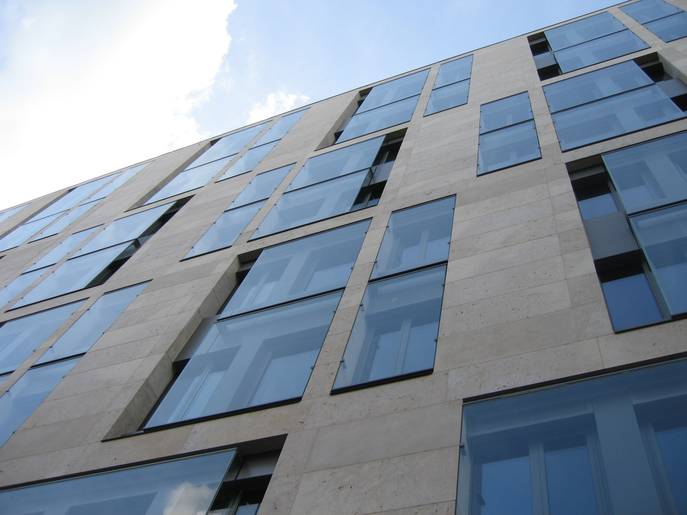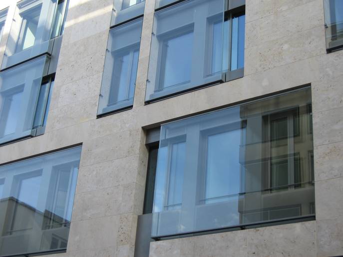 Ausführung:Komplettsanierung der Außenhülle, LM-Fensterelemente in Sonderkonstruktion, Doppelfassaden, Beschattungs- und Verdunkelungssysteme