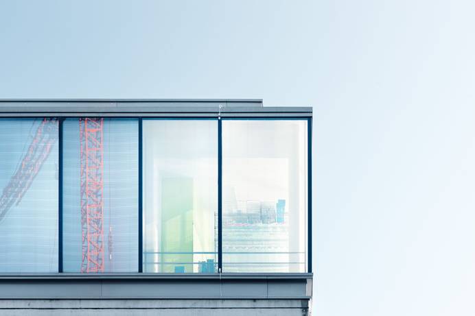 Ausführung:Alu-Pfosten-Riegel-Konstruktionen, im Scheibenzwischenraum laufender Sonnenschutz