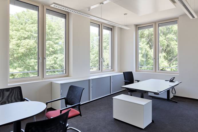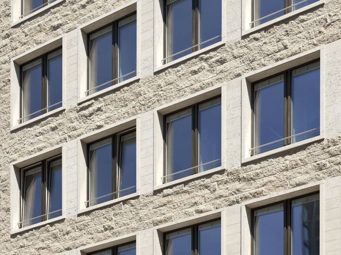 Ausführung:Passivhaus- Holz-Alu-Pfosten-Riegelfassaden, Passivhaus- Holz-Alu-Fenster mit integriertem Sonnenschutz, Holz-Alu-Brandschutzfenster F30